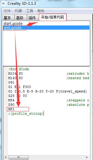 這個需在切片軟件的結(jié)束代碼后添加M81指令即可。