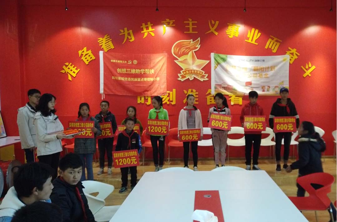 2020年國(guó)慶節(jié)即將來臨,由創(chuàng)想三維黨支部、工會(huì)、共青團(tuán)共同組織的“朝陽(yáng)計(jì)劃”再次起航。本次活動(dòng)通過四川大學(xué)研究生支教團(tuán)負(fù)責(zé)的“索瑪花兒”扶貧助學(xué)計(jì)劃,對(duì)四川省昭覺縣民族重點(diǎn)寄宿制小學(xué)進(jìn)行點(diǎn)對(duì)點(diǎn)助學(xué)幫扶。活動(dòng)旨在引導(dǎo)孩子們對(duì)學(xué)習(xí)成績(jī)的重視,從物質(zhì)上激勵(lì)貧困學(xué)生努力學(xué)習(xí),緩解受助學(xué)生的家庭經(jīng)濟(jì)壓力,改善其生活條件。