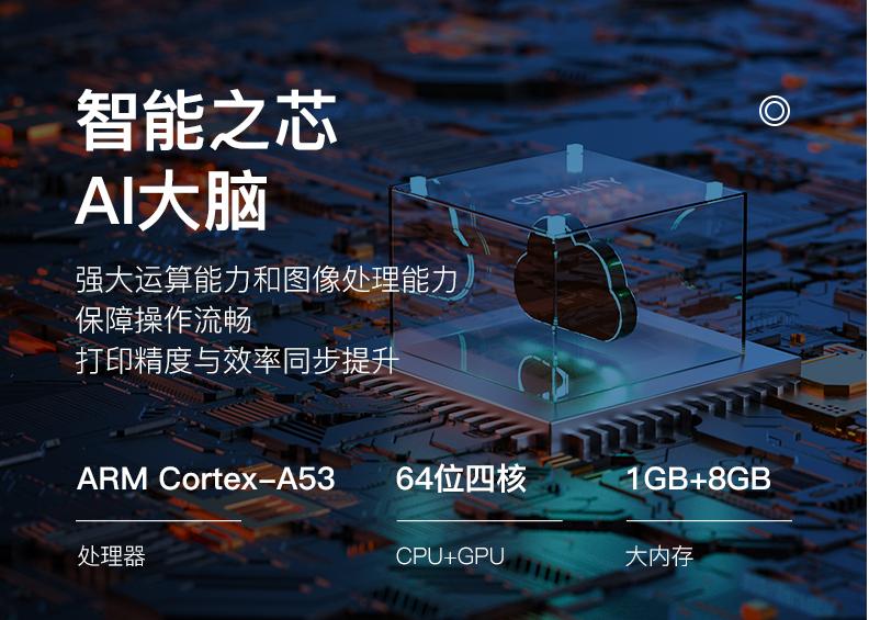創(chuàng)想三維一直致力于將3D打印智能化,HALOT-LITE搭載了ARM Cortex-A53處理器,64位四核高性能主板,擁有遠超普通光固化3D打印機的運算能力和圖形處理能力,打印精度與效率顯著提升。內置WIFI模塊,能夠清晰地掌握3D打印機的工作狀態(tài)和打印進展,還能支持一鍵系統(tǒng)更新、功能迭代、應用升級等功能應用。