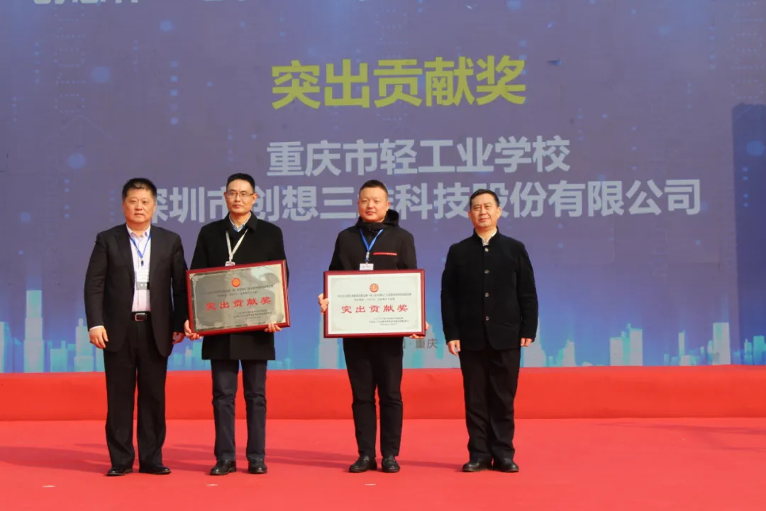 自2019年起,創(chuàng)想三維連續(xù)三屆為國賽冠名,為競賽提供CT-005 Pro(光固化)、CT-300(FDM)兩種3D打印機(jī)及現(xiàn)場技術(shù)支持服務(wù)等,保證了競賽全過程的順利進(jìn)行,在此次閉幕式中,深圳市創(chuàng)想三維科技股份有限公司榮獲“突出貢獻(xiàn)獎”。