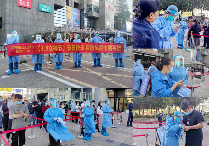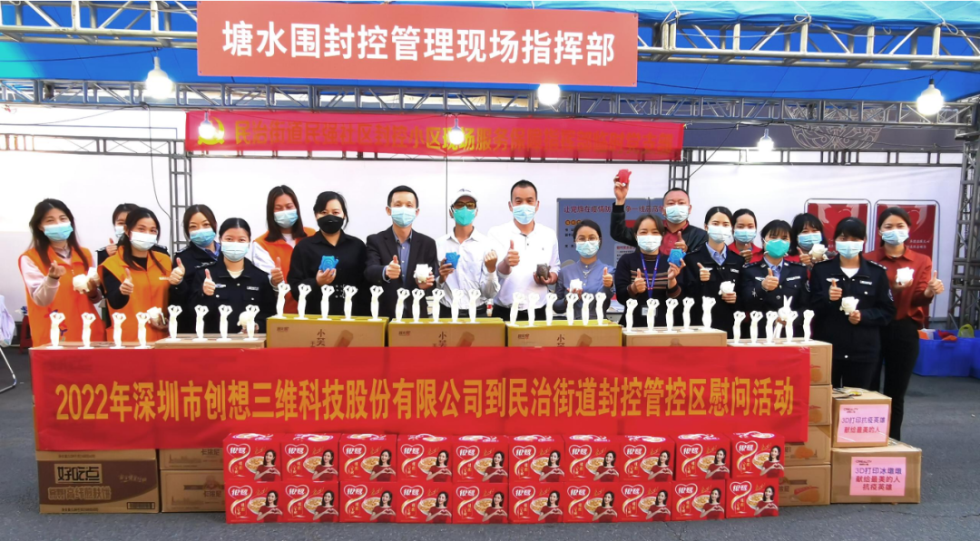 創(chuàng)想三維作為3D打印產(chǎn)業(yè)布道者,在抗擊疫情的路上,我們從未止步。2020年為支持武漢抗擊疫情,深圳市創(chuàng)想三維科技股份有限公司向武漢市慈善總會捐贈30萬元,專項用于疫情防治。2022年3月8日,在安保維穩(wěn)和疫情防控雙重考驗面前,創(chuàng)想三維積極響應號召,快速集結了一支疫情防控志愿者隊伍,在女神節(jié)這天給奮戰(zhàn)一線醫(yī)護人員以及防控區(qū)域人民帶來關懷和溫暖。