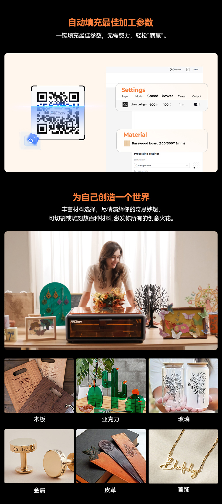 支持材料:紙板、木材、竹子、橡膠、皮革、織物、亞克力、塑料等