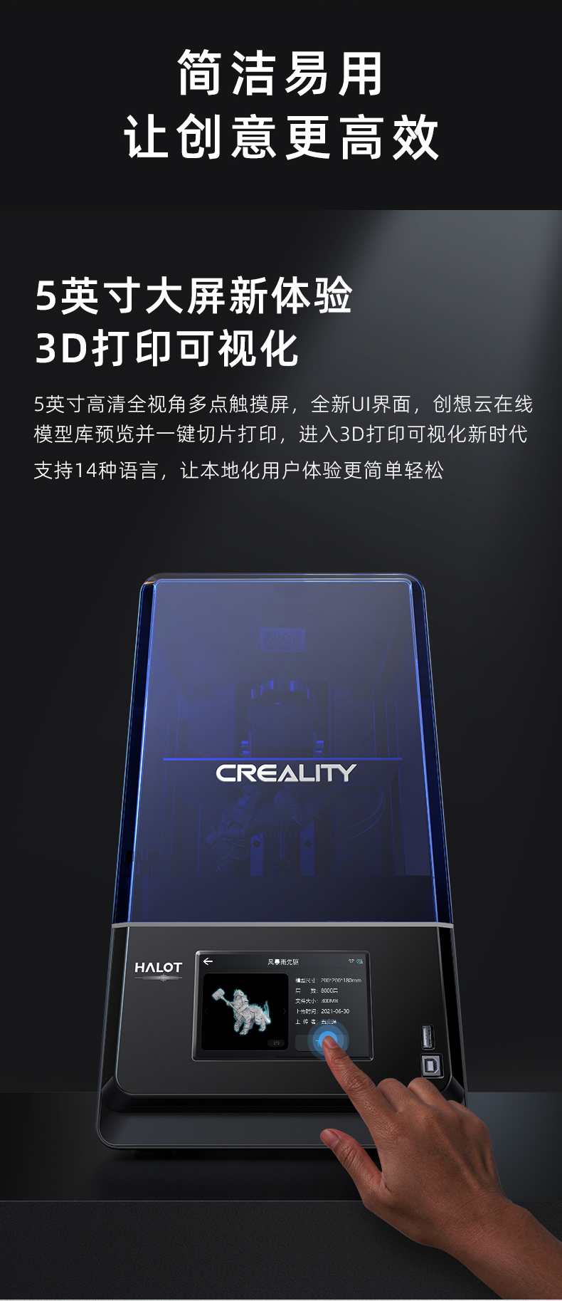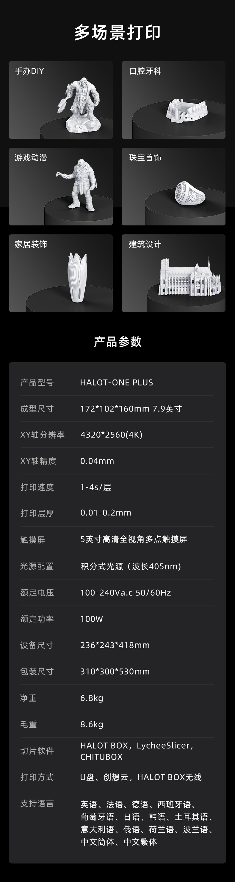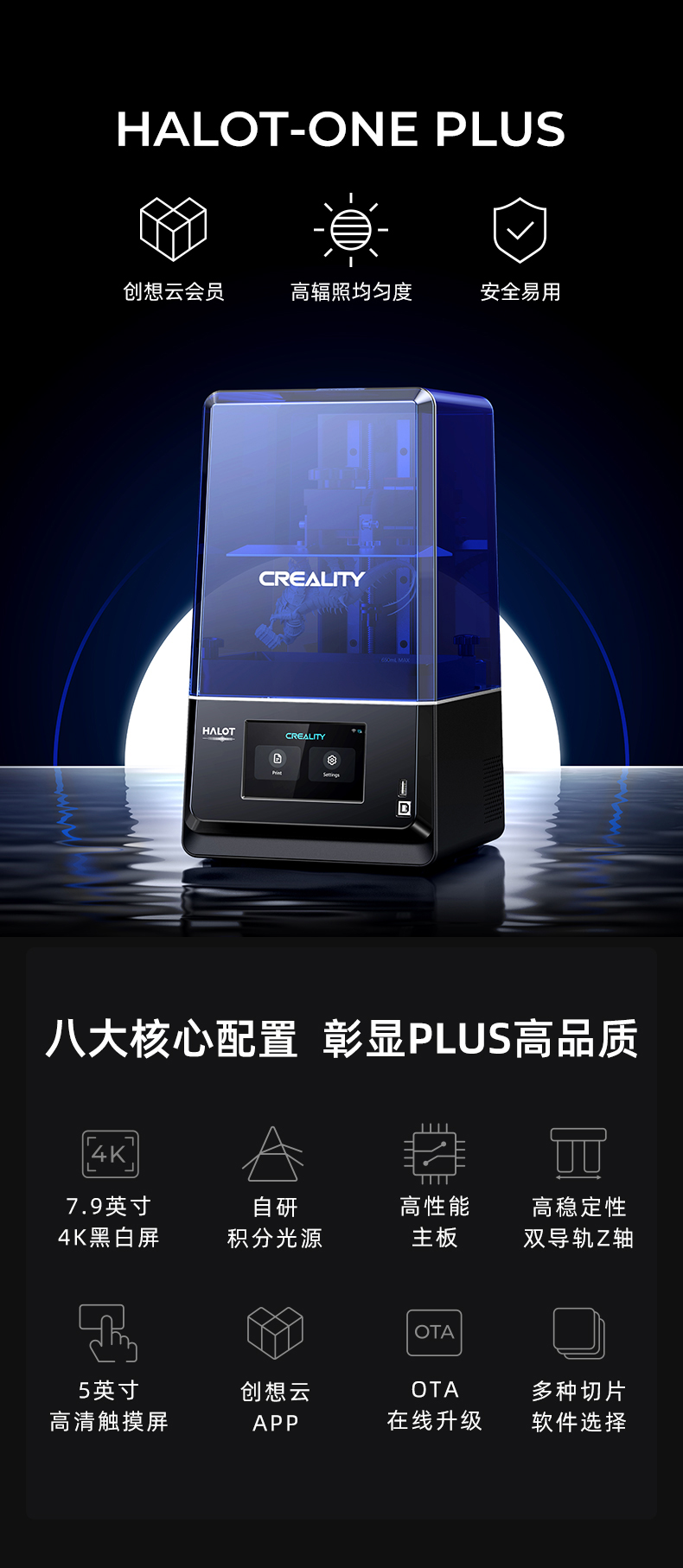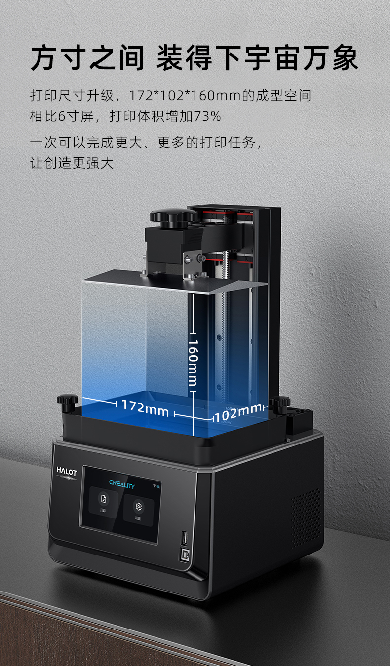 HALOT-ONE PLUS 光固化3D打印機精準易用,相比6寸屏、打印體積增加73%,一次可以完成更大、更多的打印任務,讓創(chuàng)造更強大。