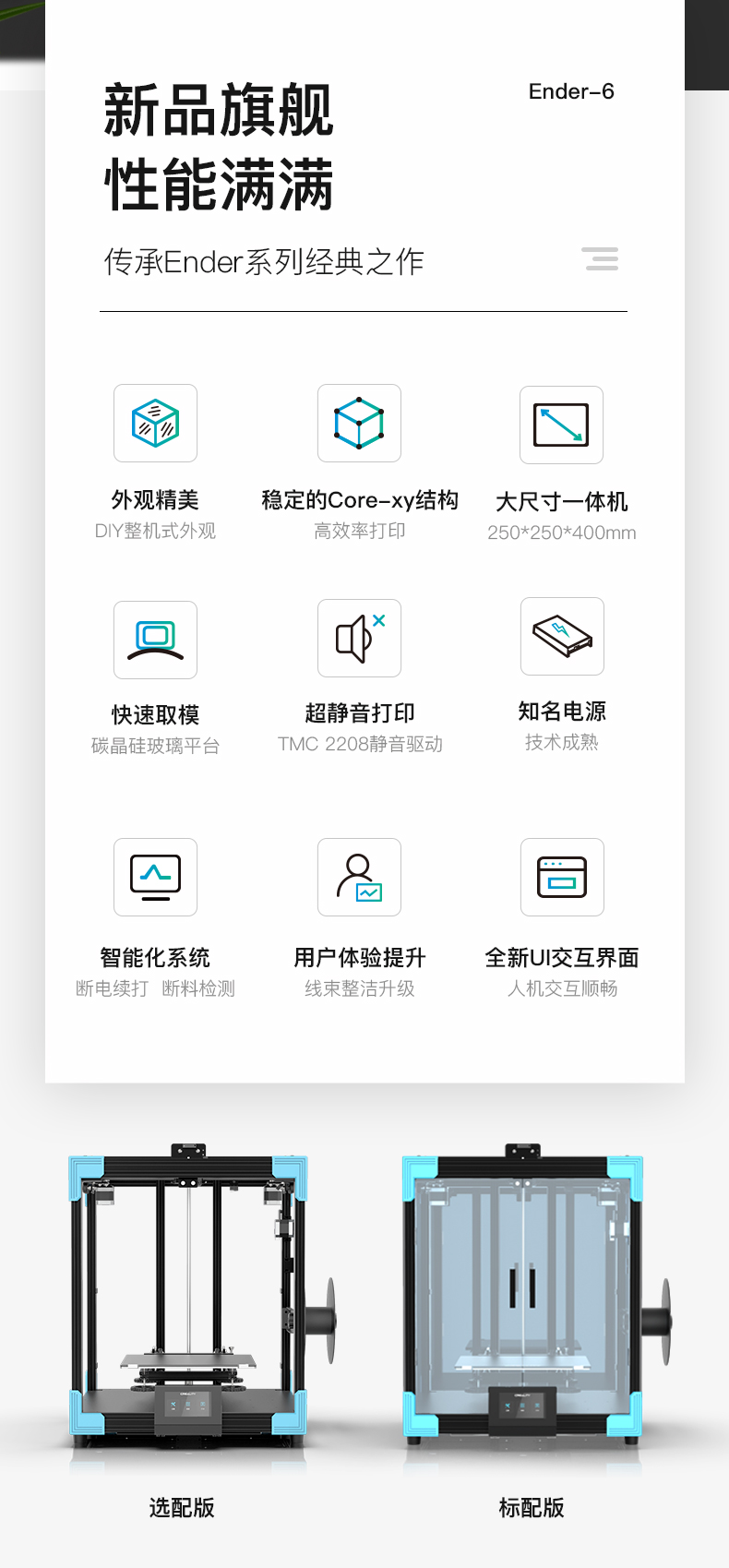 Ender-6 3D打印機,外觀高端大氣,準(zhǔn)工業(yè)級3D打印,穩(wěn)定結(jié)構(gòu)!
