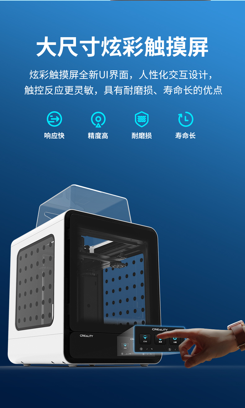 · 機型支持:全封閉式機箱、大尺寸炫彩觸摸屏、金屬擠出機構(gòu)
